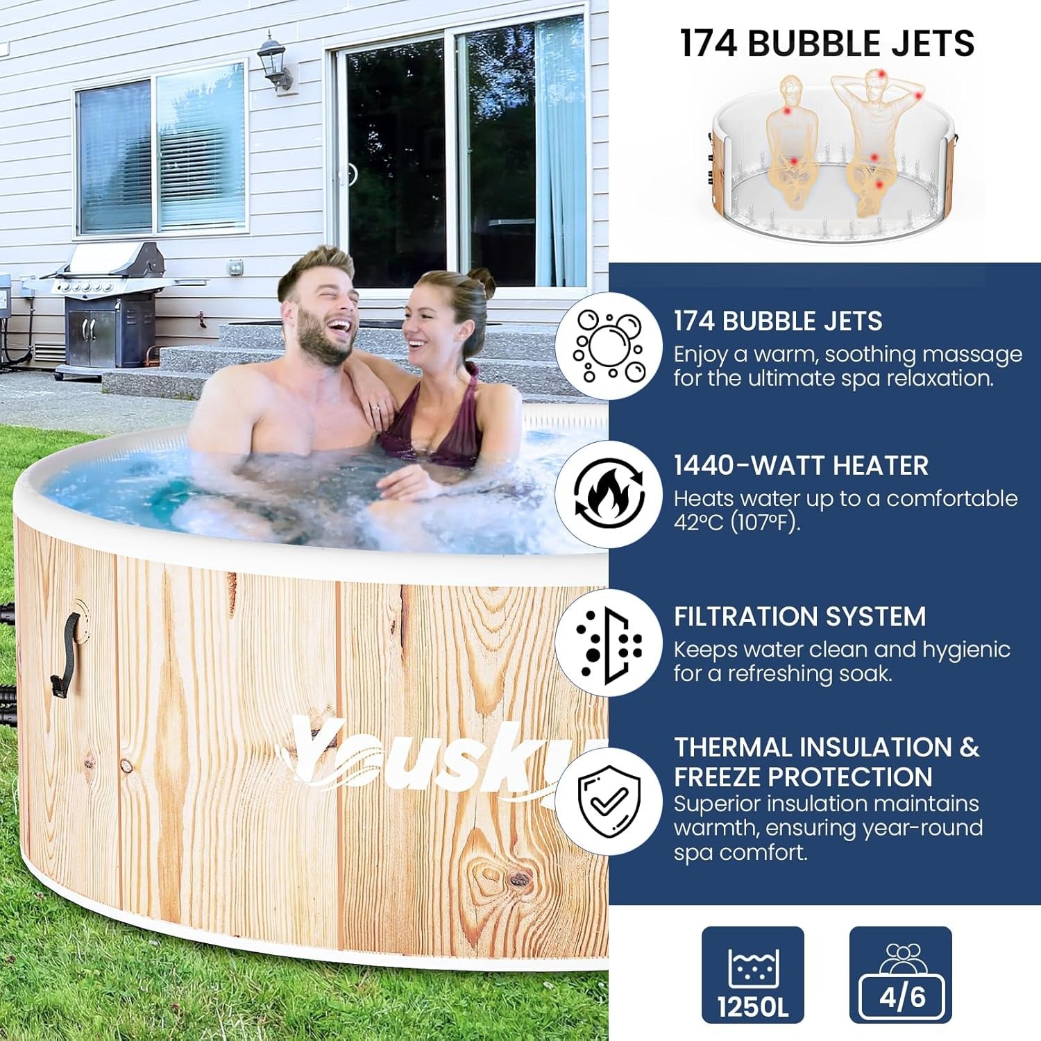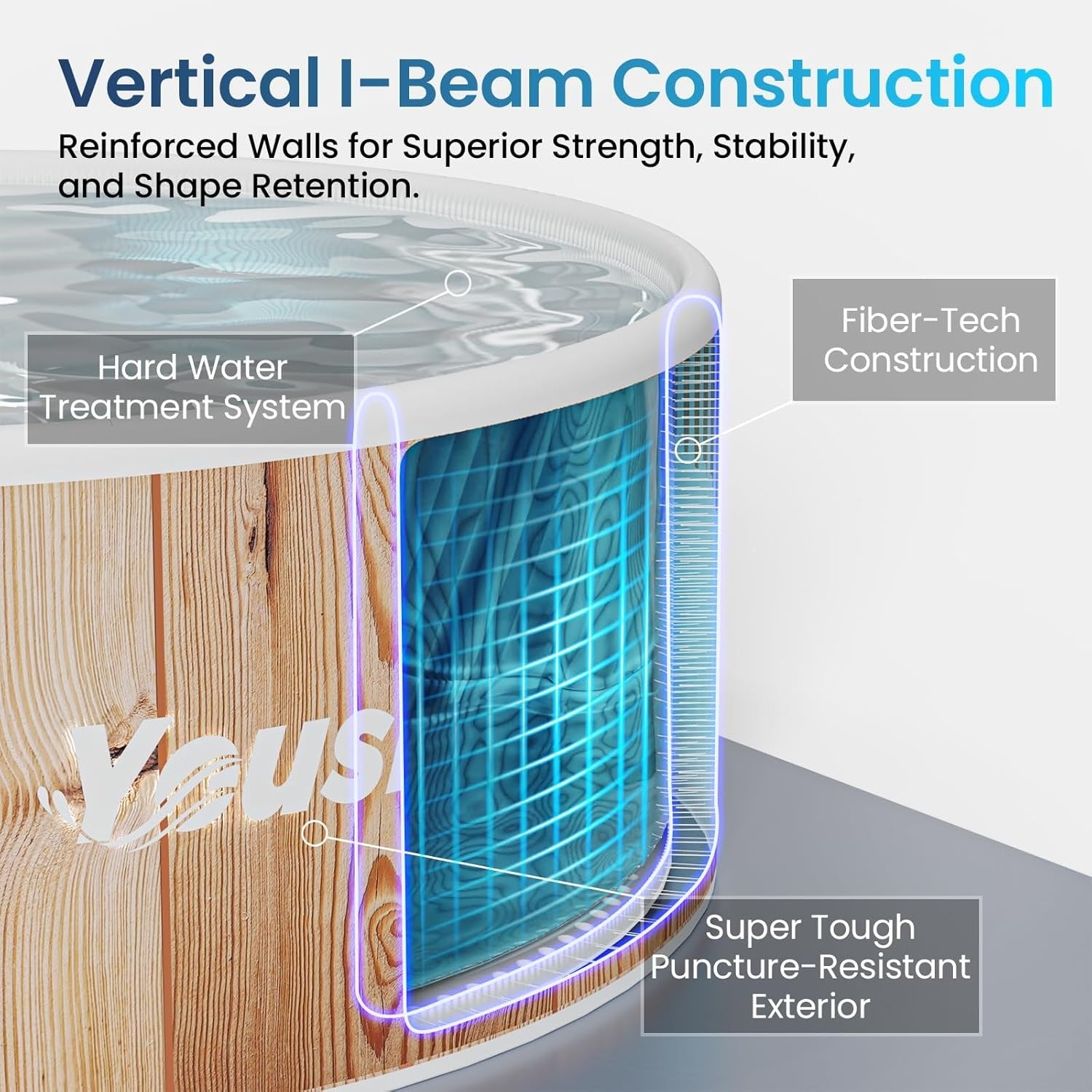 Yousky Circular Inflatable Hot Tub - Natural Wood Finish